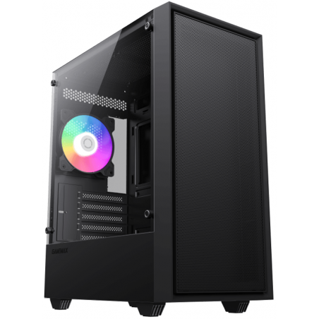 Počítačová skříň GameMax Storm nabídne vychytané provedení, kterému dominuje černá barva. Ta je použitá na ocelové konstrukci. Pojme velké množství herních či profesionálních komponentů. Náročné hráče potěší i možnost slušného odvodu přebytečného horkého vzduchu pomocí ventilátorů, pro které je ve skříni dostatek prostoru. Jeden zadní ventilátor se statickým RGB podsvícením je již od výrobce předinstalovaný. Základní ovládací panel umožňující ovládání a připojení periférií leží na horní části skříně.