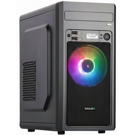 Počítačová skříň Evolveo M2 na první pohled zaujme svým stylovým vzhledem. Ve skříni je dostatek prostoru. Na zadní straně najdete sedm slotů pro instalaci nejrůznějších grafických i rozšiřujících karet.