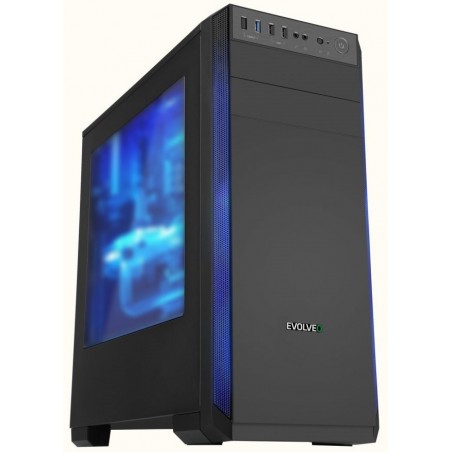 Propracovaná herní PC skříň s modrým podsvícením. Napájecí zdroj je umístěn v dolní části skříně a mřížka je osazena prachovým filtrem. Skříň má průhlednou bočnici. Vpředu jsou 2x USB2.0, 1x USB3.0 a 2x 3.5mm audio jack porty.